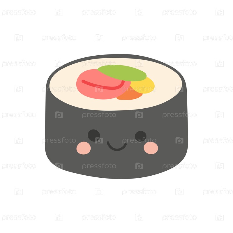 Рыбная продукция Futomaki вектор с иллюстрацией суши ресторан для риса мультфильм японский. меню азиатское изолированное от пищи мясо лосось для зеленой кухни морепродукты. белая японская еда с черной иллюстрацией