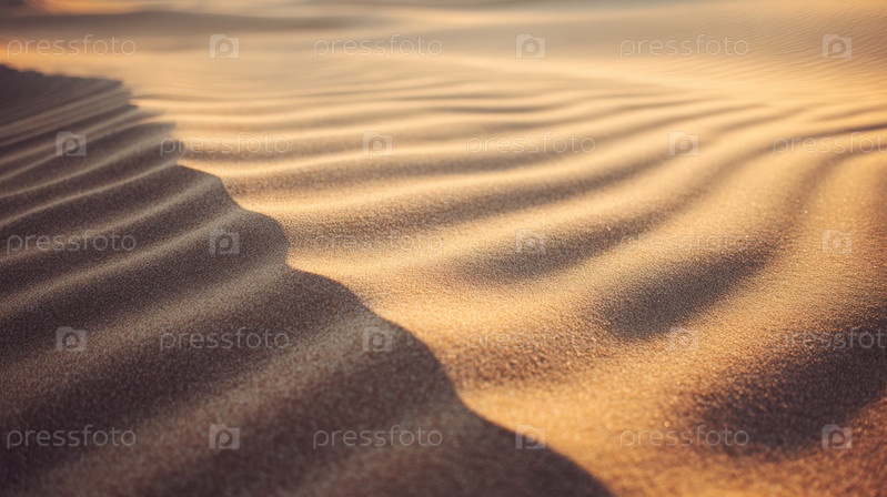 Минимальные пустынные песчаные дюны с мягкими волновыми узорами, захватывающими естественную текстуру, теплый солнечный свет и спокойный ландшафтный фон