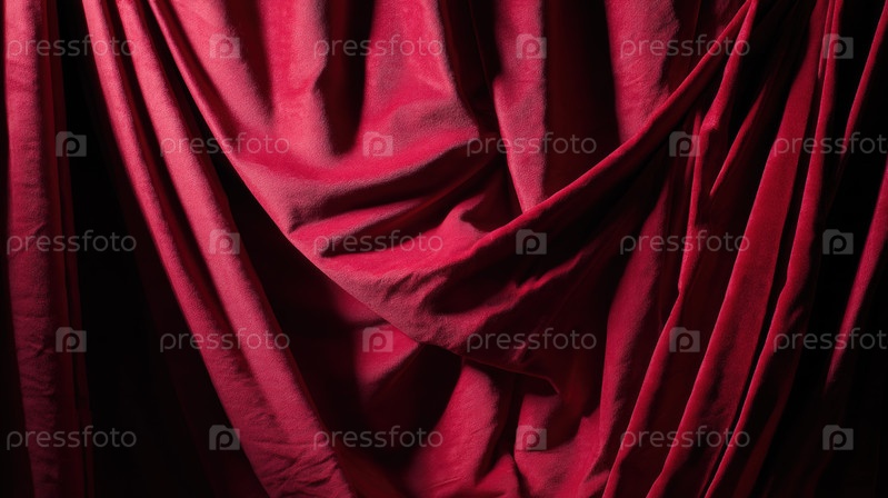 Красная бархатная ткань с мягкими складками и богатой текстурой, элегантный роскошный фон для моды, театра, дизайна интерьеров и премиальных декоративных концепций