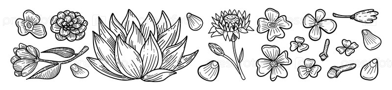Линия иллюстрации цветов с векторным винтажным эскизом для искусства цветного рисунка. изолированная рука ботаническая с дизайном цветочного растения для ретро розового фона. листья листьев цветка с садовым вектором