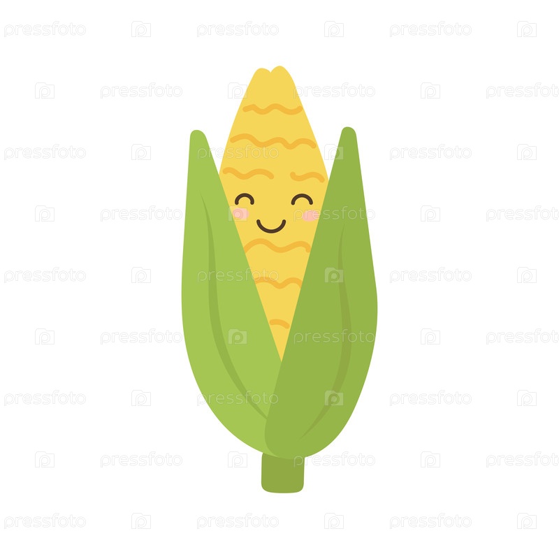 Изолированный летний фон и кукурузное овощное растение с фермой белой пищей. Графика здоровья кукурузы и здоровый мультфильм