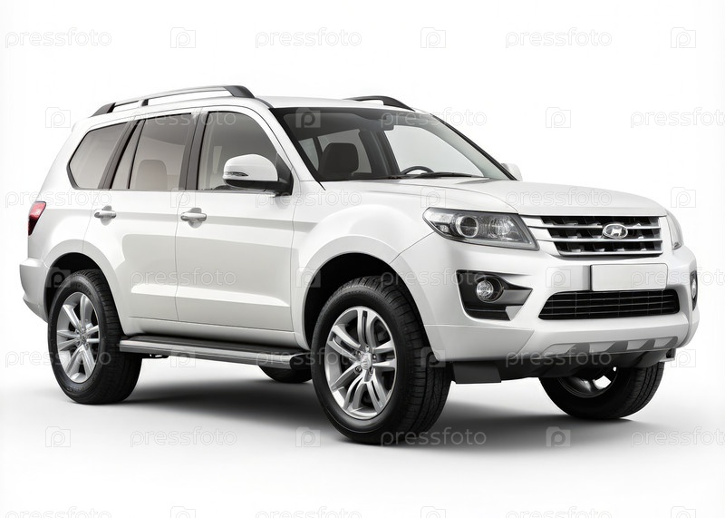 Белый внедорожник расположен элегантно на чистом белом фоне, демонстрируя свой дизайн и функции