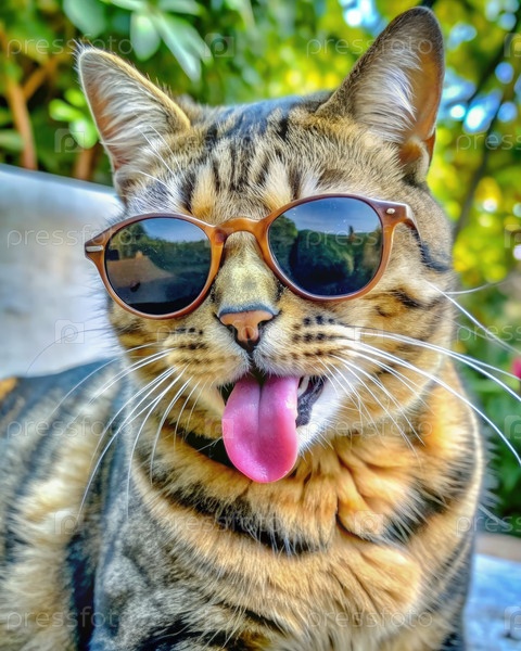 Кошка, носящая солнцезащитные очки на открытом воздухе