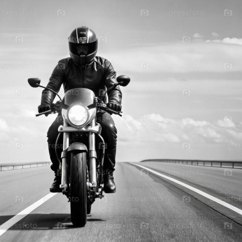 Мотоциклист едет по прямой дороге в солнечный день. генеративный ИИ
