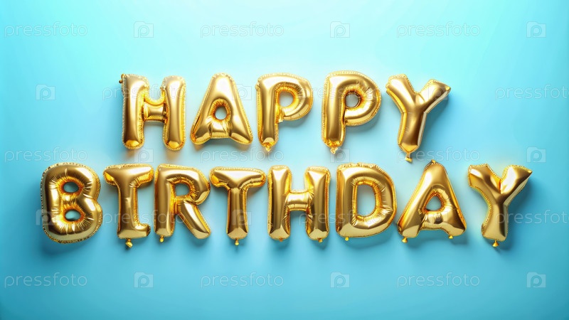 Золотые шарики с днем рождения украшают ярко-синий фон для празднования