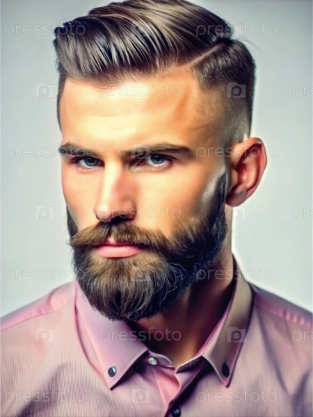 Стильный мужчина с короткой бородой и гладкими волосами позирует в городской обстановке во второй половине дня