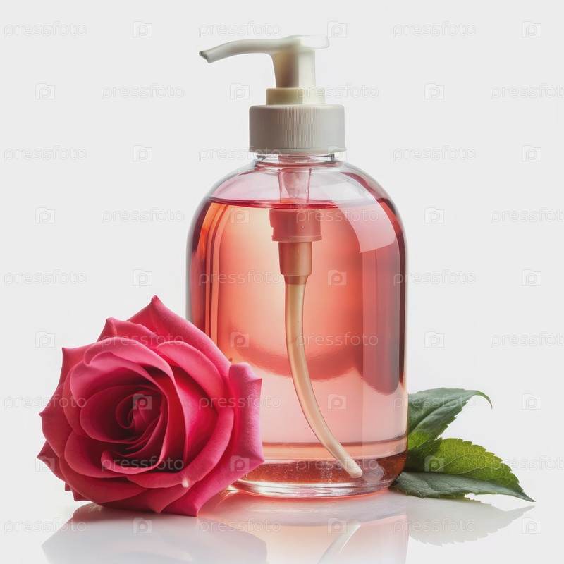 Бутылка жидкого мыла с ароматным розовым цветом. генеративная ИИ