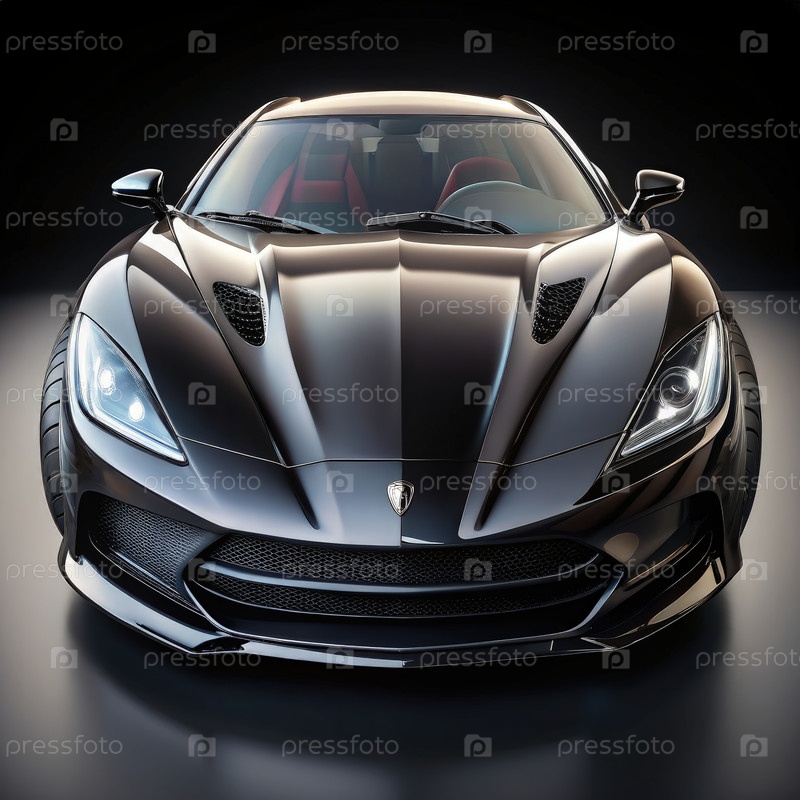 Глянцевый черный спортивный автомобиль с передним видом. генеративное ИИ