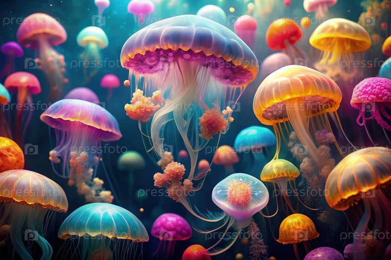 Красочные медузы танцуют в подводной симфонии