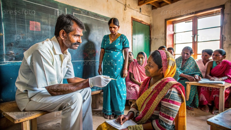 Медицинский работник, осматривающий женщину-пациента в сельской клинике. генеративный ИИ мужчина