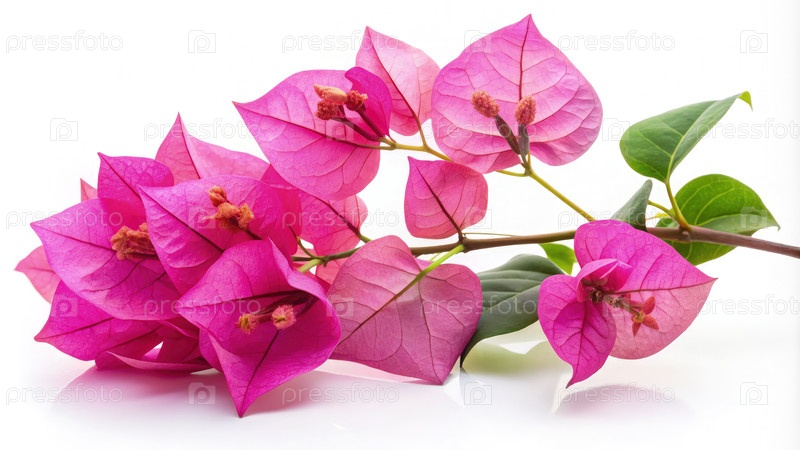 Цветы бугенвильи выглядят элегантно на белом фоне при естественном свете
