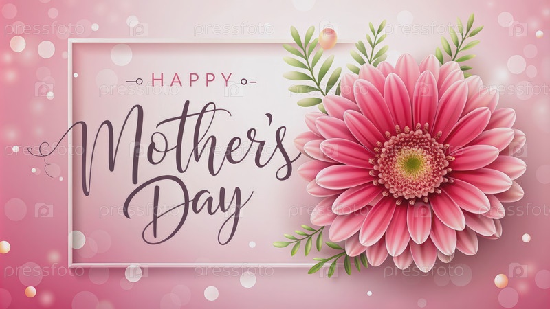 Розовый цветок и белая рама Счастливого Дня матери. генеративный AI