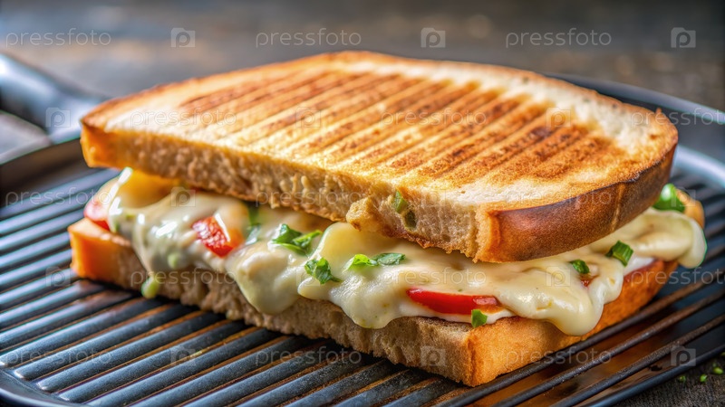 Ближайшее изображение бутерброда с жареным сыром с расплавленным сыром и зелеными луками