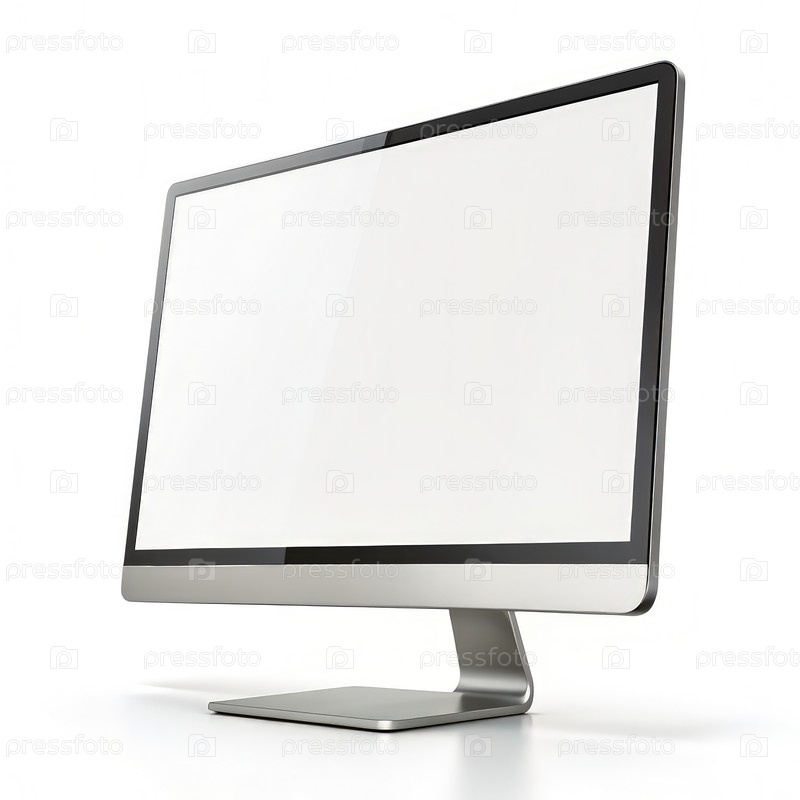 Мокет экрана настольного компьютера с пустым белым дисплеем