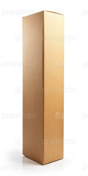 Высокая закрытая картонная коробка, изолированная на белом фоне