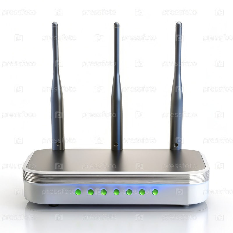 Беспроводной маршрутизатор с тремя антеннами на белом фоне