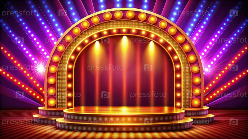 Вибрирующий ретро-сценарийный дизайн с яркими огнями для живых выступлений и мероприятий. генеративная ИИ