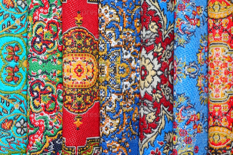 Семь разноцветных ковров лежат в ролле друг на друге по вертикали
