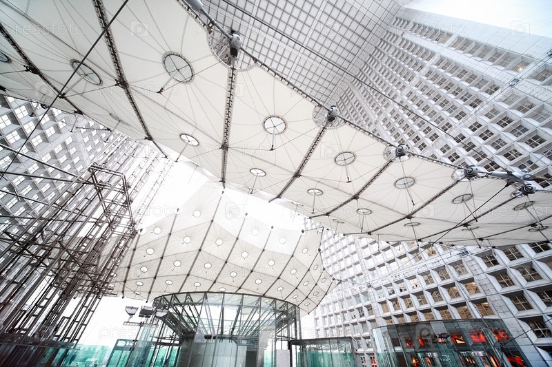 Арка в деловом районе La Defense в Париже, Франция, вид снизу