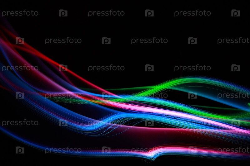 Абстрактные красочные линии на черном фоне, ярко-розовый, красный, зеленый