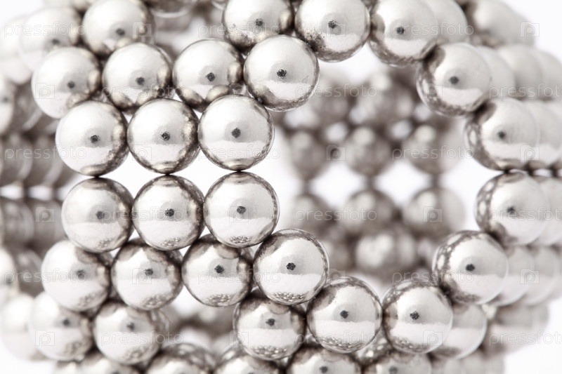 Серебряные металлические сферы, расположенные в изогнутом скоплении