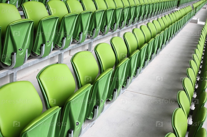 Ряд ярко-зеленых сидений на стадионе выстроили вдоль бетонного прохода