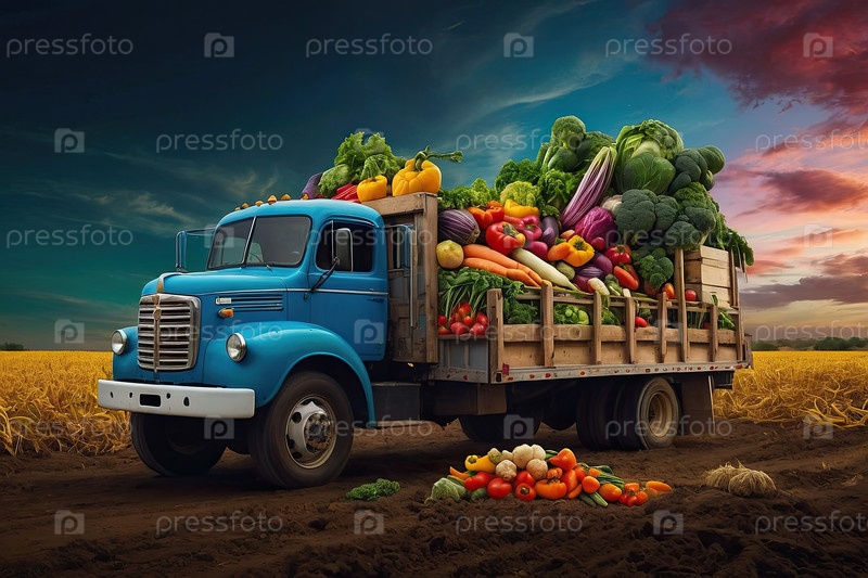 Ночной уборочный грузовик с овощами ? ярмарка, рынок экопродуктов, праздничное торжество, местное распродажное мероприятие, фирменный брендинг вечеринок, сельский маркетинг, осенняя еда
