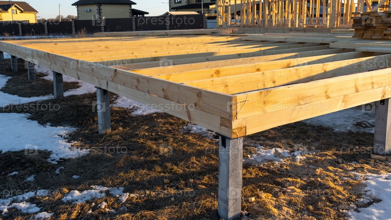 Фундаментальная платформа с деревянными балками, монтаж винтовой свай для каркасного дома, подготовка земляных работ на площадке, поддерживающая база для стен и ступенек установки пола