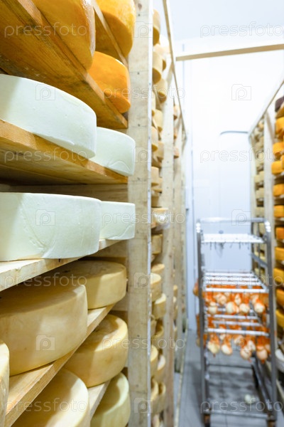 Сырные полки с большими колесами, фермерский сырный бизнес, тщательное старение в холодном хранилище, ремесленное производство, созревание, молочная традиция, местный продукт