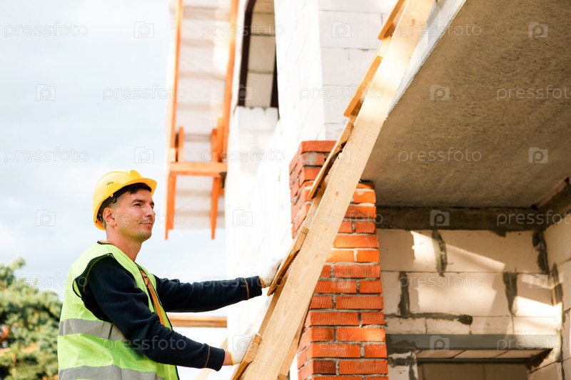 Работник исправляет деревянную доску, строительные работы, техническая поддержка, обследования позиции, надежная установка, проект здания, командная работа, жилищная застройка, ремонтные действия