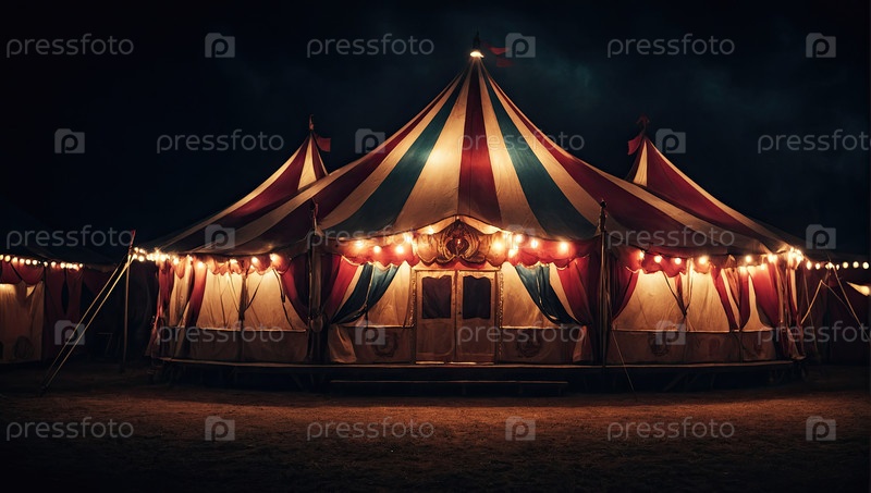 Ночной фестиваль цирковый купол ? освещенная палатка, магическая атмосфера, праздничный плакат, брендинг мероприятия, билет, семейное удовольствие, веселая вечеринка, развлекательное шоу