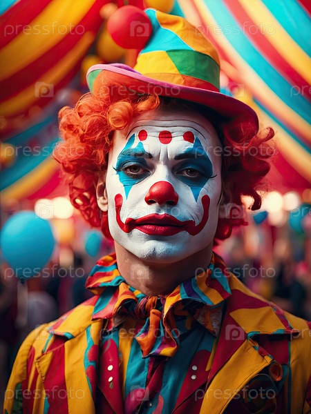 Улыбающийся цирковый клоун с синим париком ? игривая исполнительница, дизайн билетов, объявление о шоу, семейная детская вечеринка, фестиваль, развлекательный плакат, радостное событие, веселое промо