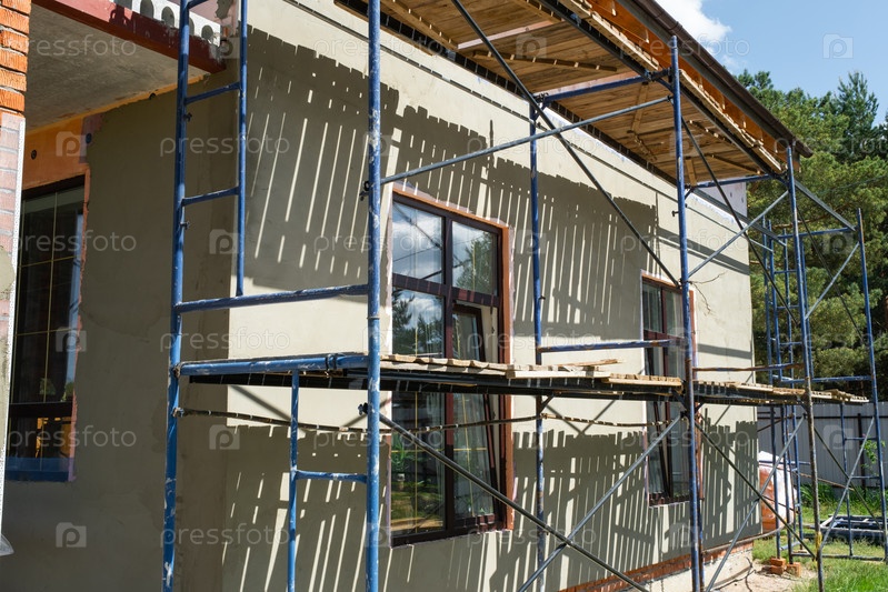 Окончание штукатуркой внешней стены, фасадной сетки, установки скелетов, защиты стен, сглаживания, изоляционного слоя, завершения строительства, ремонта, декоративной сцены