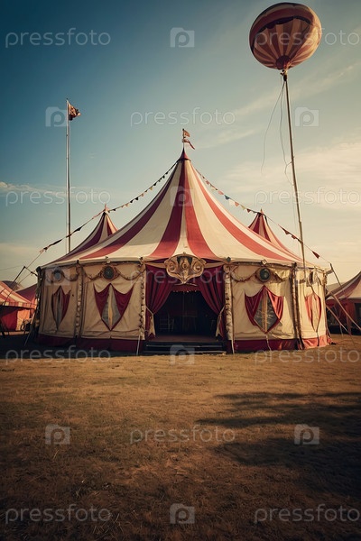 Большая верхняя цирковая палатка с воздушным шаром ? день на открытом воздухе, тема вечеринки, изображение для плаката, билет на фестиваль, приглашение, корпоративное мероприятие, яркая и игривая атмосфера