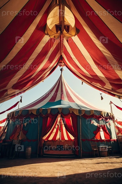 Цирковый купол с висящими огнями ? внутри палатки, праздничное настроение, плакат для вечеринки, детское мероприятие, дизайн билетов, брендинг развлечений, магия и веселье