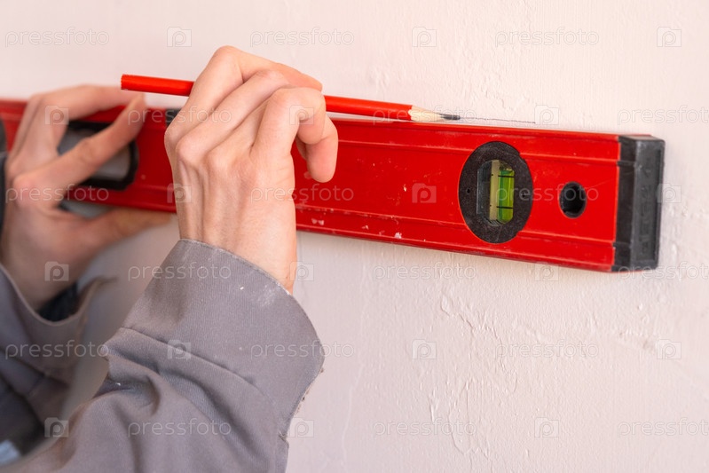 Уровень духа и карандаш для обозначения стен, проверки выравнивания и планировки линий, реконструкции сооружений, инструментов установки, подготовки к улучшению дома
