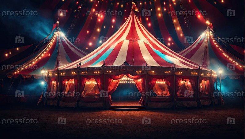Цирковая купольная сцена с огнями ? светящаяся палатка, ночное мероприятие, приглашение на фестиваль, плакат для выступления, баннер вечеринки, брендинг для веселого шоу