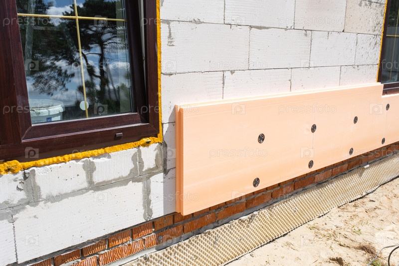 Тепловая пеноизоляция на фасаде здания, внешней стенной облицовке, ремонте дома, строительной площадке, энергоэффективности, ремонте фасада, монтаже панелей