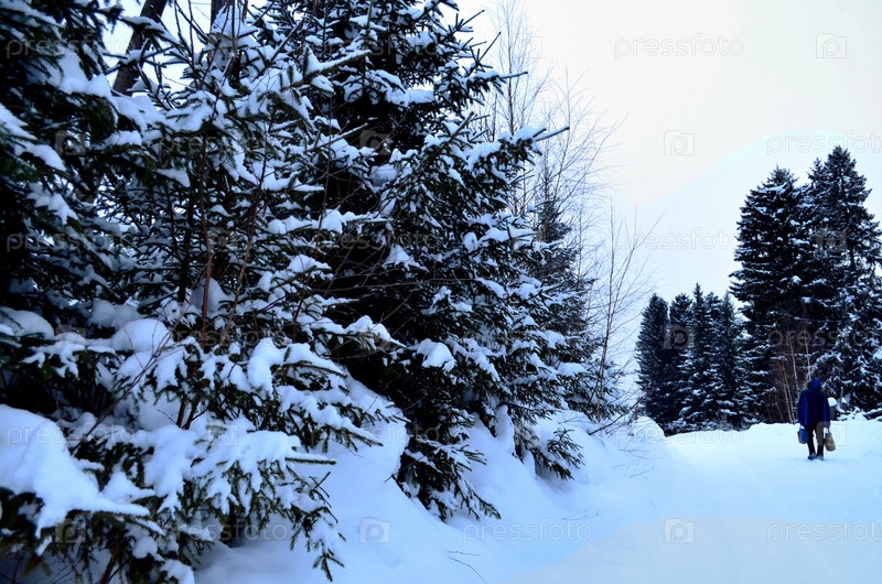 Сельская дорога зимой. Пешеход вдалеке