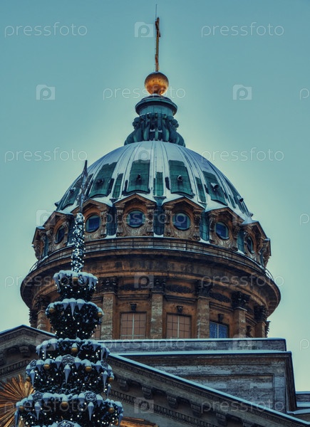Казанский собор со снегом на куполе в Санкт-Петербурге