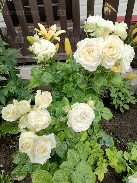 Куст белых роз
