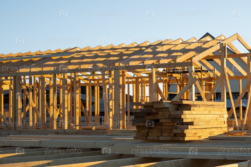 Скелет деревянного дома, установка балки на фундаментные свайки, прогресс в лесоматериалах, сборка рамы, поддержка опоры, строительная площадка, наружные стройплощадки