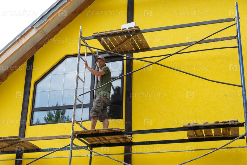Стенная живопись с эскалатом, отделка краски на штукатурке, обновление внешнего цвета, деревянные доски для декора полудревесного мотива, поверхностное завершение, современный вид