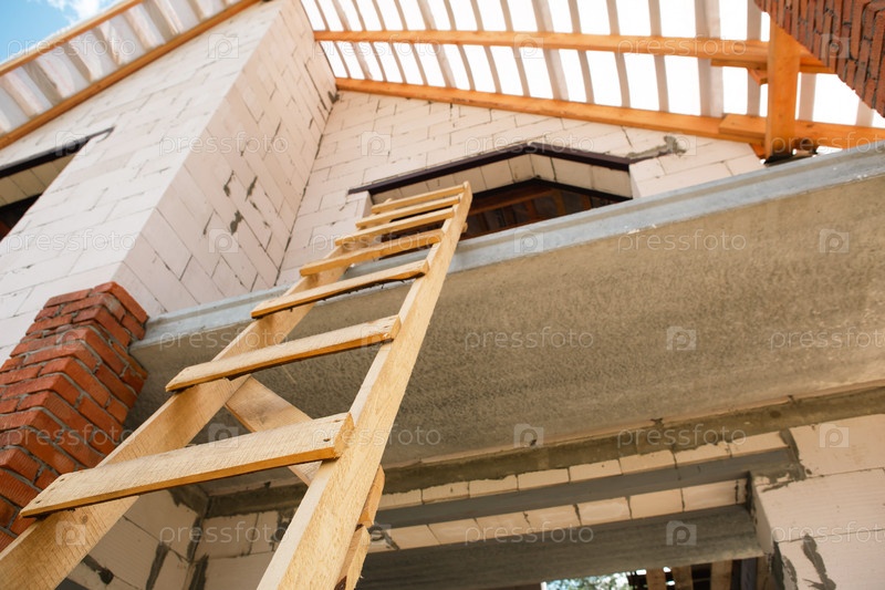 Современный дом, частичные леса, завершенная чердаковая рама и деревянные кровельные крыши, внешняя отделка в европейском стиле, строительная технология