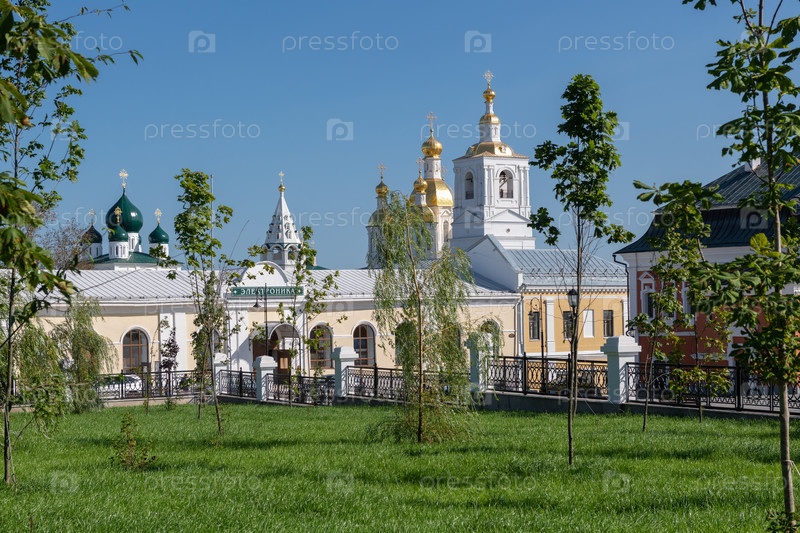 Вид на Парк культуры и отдыха, площадь Монастырский садик в летний день. Россия, Арзамас