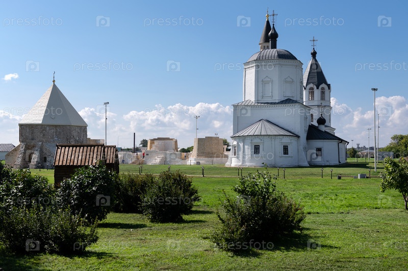 Болгарский государственный историко-архитектурный музей-заповедник. Соборная мечеть и Большой минарет, церковь Успения Пресвятой Богородицы, Северный и Восточный мавзолеи. Болгар, Татарстан, Россия