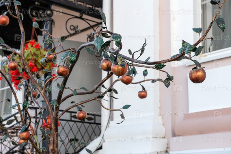Железные яблоки на металлическом дереве в Свято-Николаевском женском монастыре. Россия, Арзамас