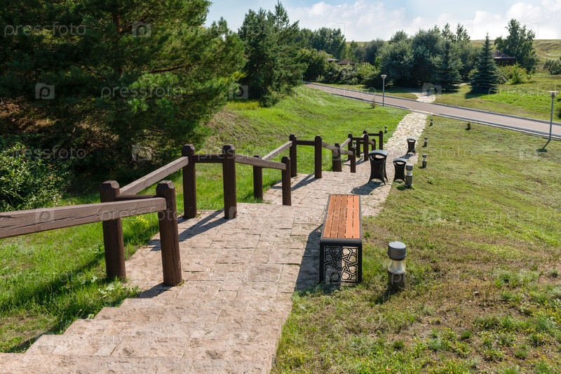 Дорога со ступеньками и перилами для прогулок по холмистой местности