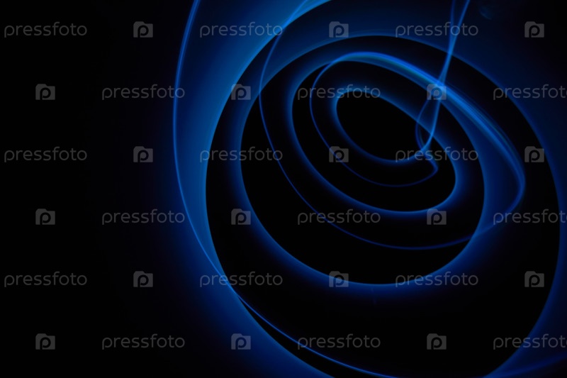 Абстрактная красочная спираль на черном фоне, ярко-синий фризлайт