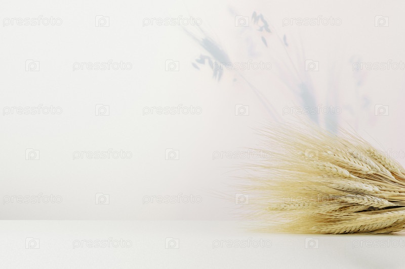 Минимальный подиум с пшеничными ушами на мягком фоне для продуктового дисплея